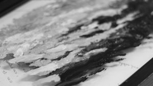 «Muchas veces la primera confrontación física con la obra es el lienzo en blanco. Un blanco que sin embargo con frecuencia transformo en marrón o en negro, o en acero, o en transparencia total.»